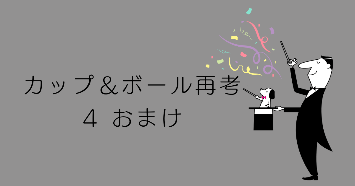 ただし、基本的な演技の流れは同じで、 「ボールはカップの下か、ポケットの中か? 」 そういったクイズのような演出?です。